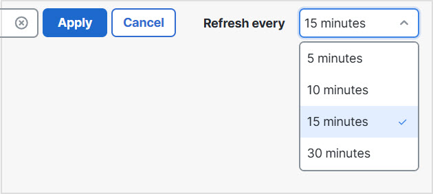 Click the Refresh interval drop-down to select from the available intervals to refresh the data in the table.