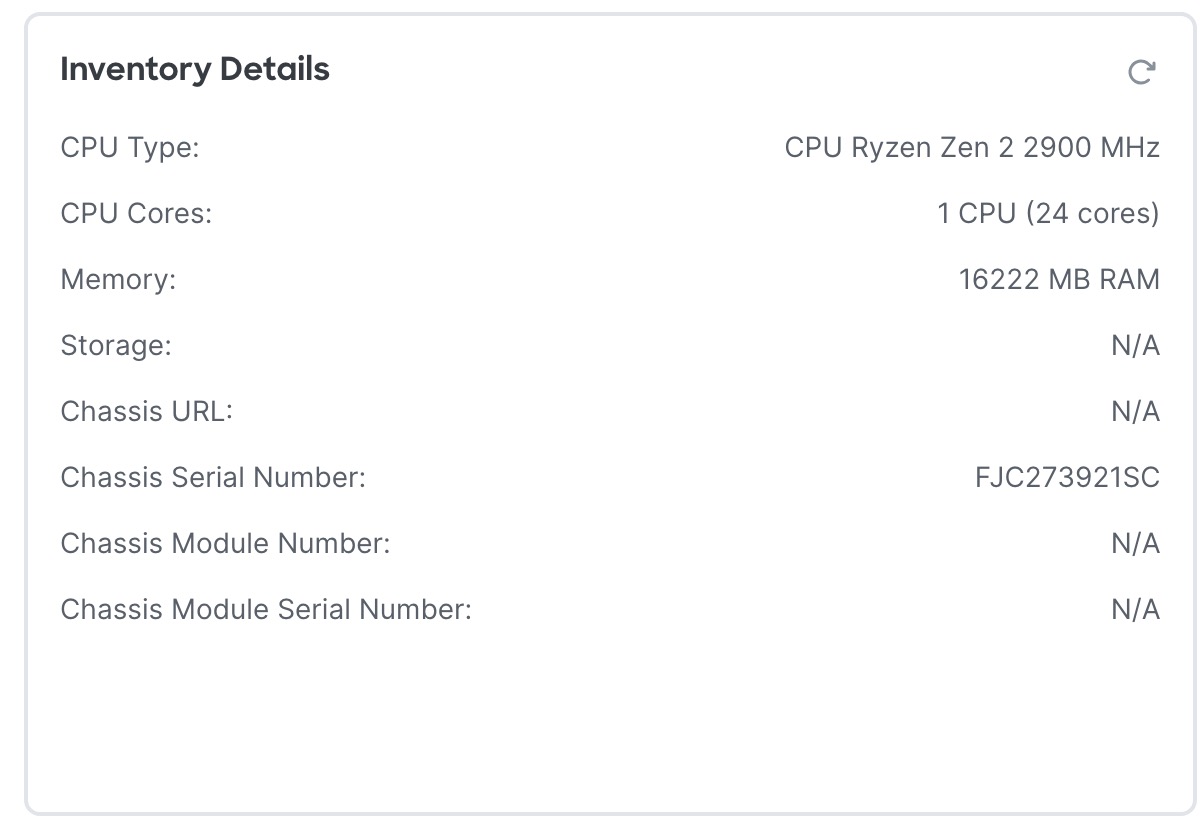 This section shows the chassis serial number. The firewall includes two serial numbers: the chassis serial number and the PCB (circuit board) serial number. The PCB serial number is shown in the System section. The Firewall Threat Defense Virtual does not have a chassis serial number.