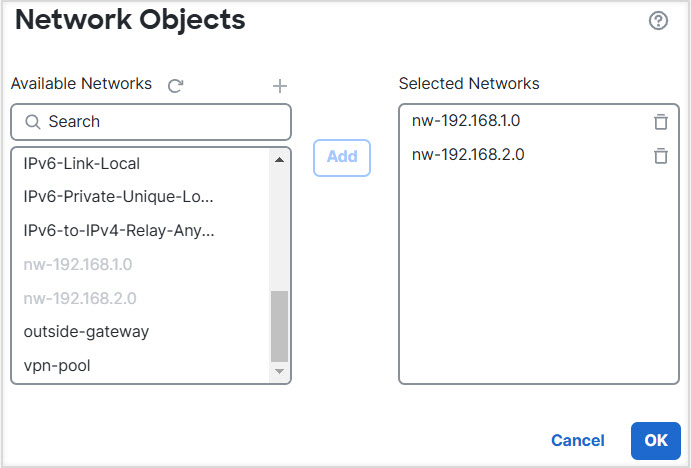 Step 3 | Add the 192.168.1.0/24 network to the site-to-site VPN connection profile: |