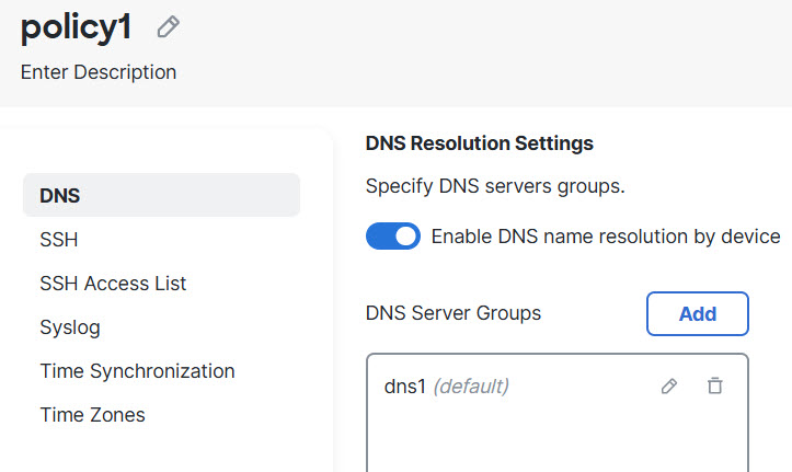Step 3 | Enable the Enable DNS name resolution by device slider. |
