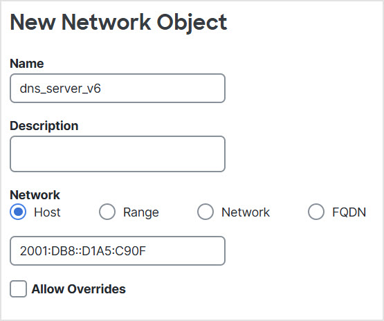 Because you want inside users to use the mapped address for ftp.cisco.com (2001:DB8::D1A5:C8E1, where D1A5:C8E1 is the IPv6 equivalent of 209.165.200.225) you need to configure DNS reply modification for the static translation. This example also includes a static NAT translation for the DNS server, and a PAT rule for the inside IPv6 hosts.
