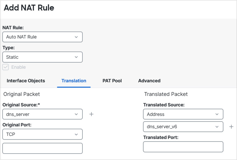 Step 3 | Configure the static NAT rule for the DNS server. |