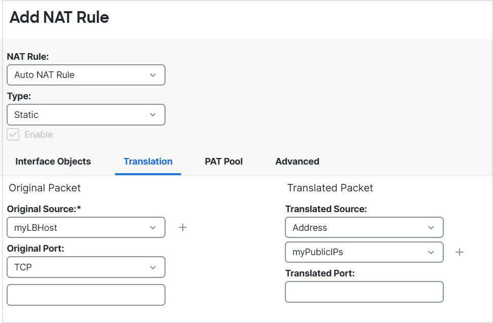 Inside load balancer with multiple mapped addresses (static auto NAT, one-to-many)