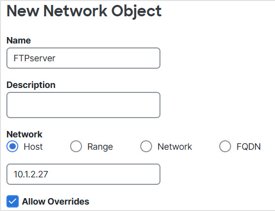 Step 1 | Create a network object for the FTP server. |