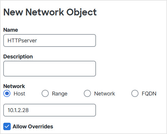 Step 2 | Create a network object for the HTTP server. |
