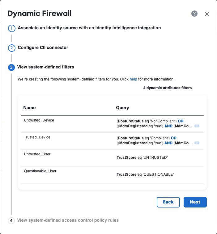 Step 1 | The system displays a set of system-defined dynamic attributes filters, as the following figure shows.